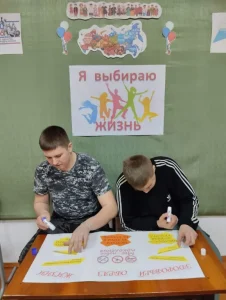 В заключение беседы ведущая предложила ребятам сделать плакат здоровья.