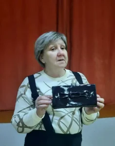 Особым гостем мероприятия стала Ольга Николаевна Хижняк, жительница нашего поселка. Она принесла с собой нечто очень ценное – семейную реликвию, клатч своей бабушки. Ольга Николаевна поделилась с ребятами историей этой вещи, рассказав о том, как важны такие предметы, хранящие память поколений, и как они помогают нам чувствовать связь с прошлым и ценить свою семью.