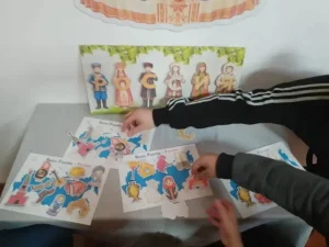 Также участники мероприятия вспомнили о различных символах страны (берёзе, матрёшке, самоваре, балалайке) и попытались собрать пазл с символами.