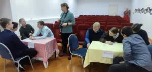 Игру открыла энергичная разминка, которая сразу задала темп и позволила участникам настроиться на творческий лад. Затем команды погрузились в оживленную дискуссию, обсуждая тонкости театрального этикета: что допустимо на сцене и в зрительном зале, а что строго запрещено. Этот этап позволил не только проверить знания правил, но и выявить разные подходы к восприятию театрального искусства.