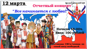 Приглашаем всех жителей п. Красная Сопка на отчетный концерт смотра художественной самодеятельности » Все начинается с любви!», посвященный Году единства народов России.